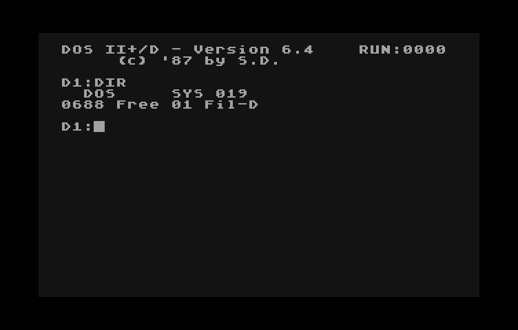 - ustawiamy stację D1 w SIO2SD na plik DOS2PLUSD.ATR
