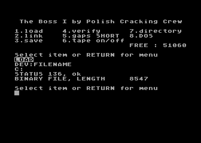 - Uruchom komputer z klawiszem OPTION, ładując program The Boss z dyskietki.
